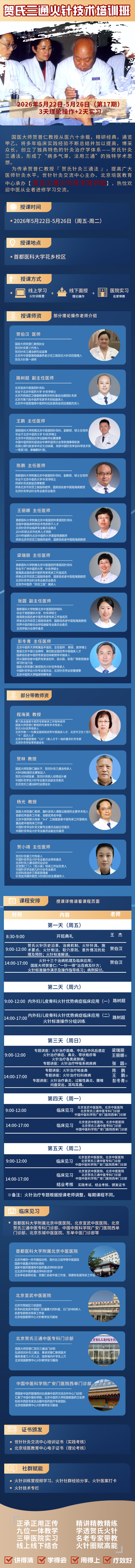 课程特点:系统学习贺氏三通火针疗法理论及重在实践操作,重点掌握火针技术操作,贺氏火针临床治疗方法。